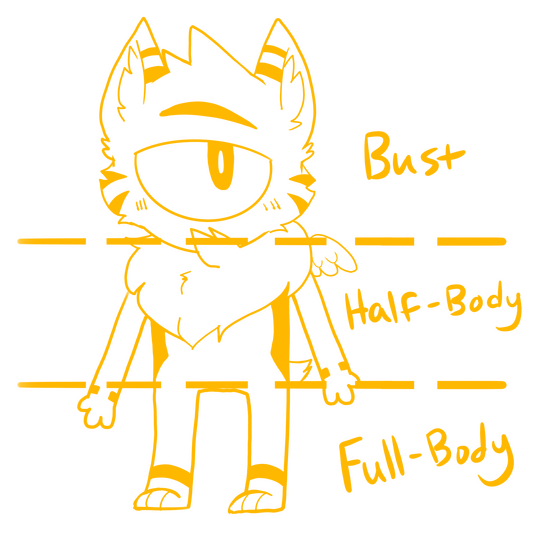 Base ref sheets come with a full-body frontal, torso, maw, and side profile. If help is needed in designing the character,